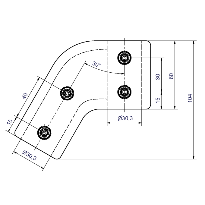 Kategorie: Rohrverbinder - Alu-Clamps - AC - 30mm - 30° bzw. 60° - T-Verbinder - schräg