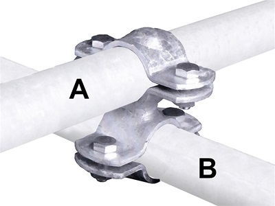 Dieser Überkreuzverbinder ermöglicht die Verbindung zweier Rohre im 90° Winkel. Dieser Winkel kann nicht verstellt werden.
